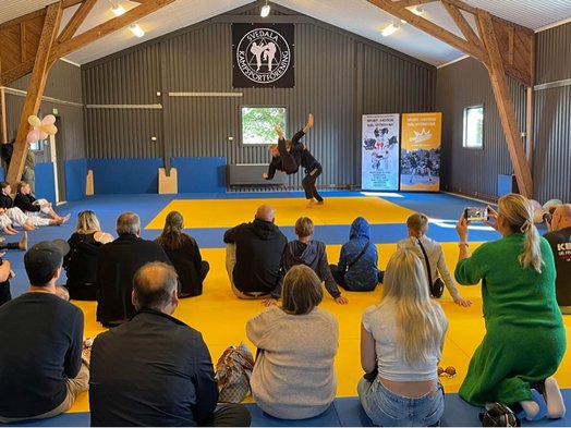 Birgitta Delring, ordförande Kultur och Fritid, var hedersinbjuden tillsammans med Patrick Van Hengel, Skånes Budo & Kampsportsförbund, för att klippa bandet och hålla tal.